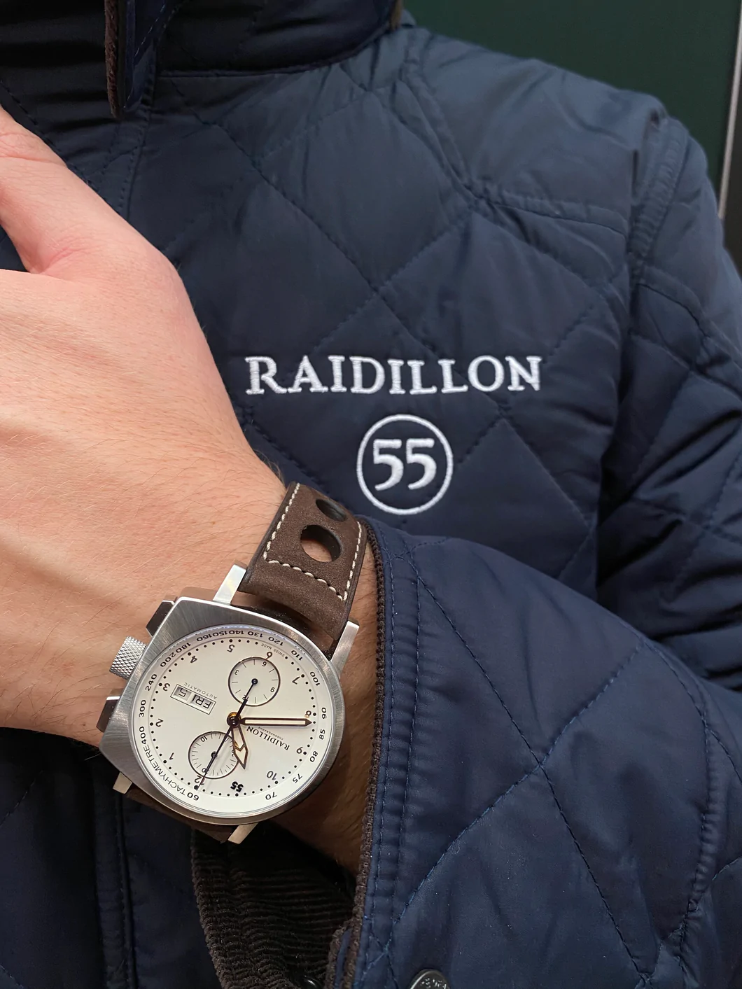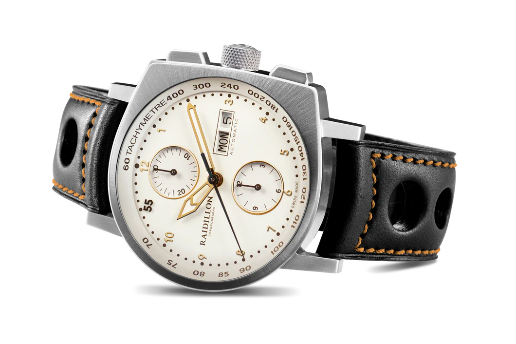 Cette montre s'adapte parfaitement à notre nouvelle collection d'accessoires raffinés pour les Gentlemen Drivers modernes. La forme incurvée de cette élégante montre est utilisée comme composant pour notre bagagerie et complète l'expérience Raidillon pour chaque Gentleman Driver.