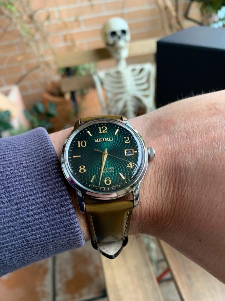 Les montres de la collection Presage Cocktail sont facilement reconnaissables à leur cadran texturé, l'élégante simplicité de leur apparence est parfaitement conforme à la tradition japonaise. Le vert du cadran de ce modèle SRPE45J1 trouve son inspiration dans la couleur du Mojito, un cocktail à base de rhum, de soda, de citron vert, et de feuilles de menthe fraîche. Accompagnée d'un bracelet en cuir marron pour un effet habillé tout en restant confortable, cette montre automatique est parfaite pour toutes les occasions.