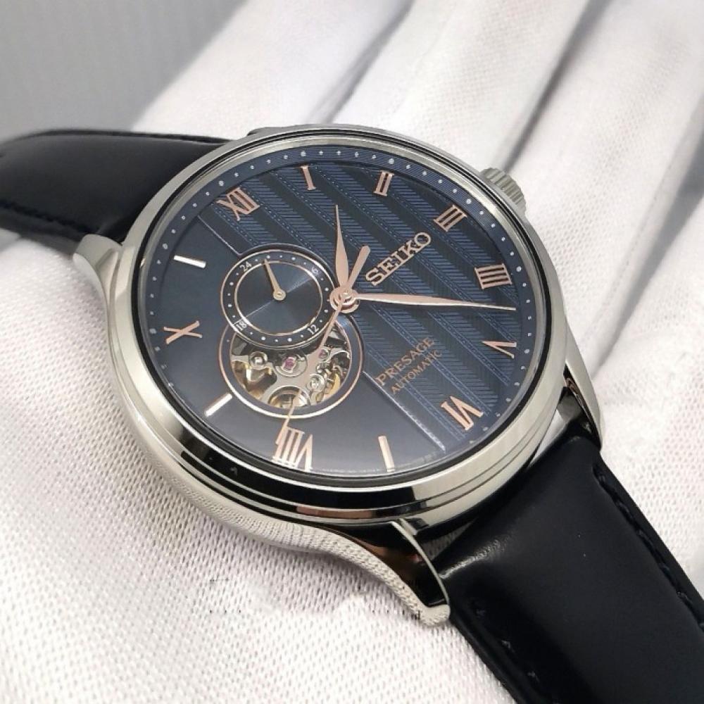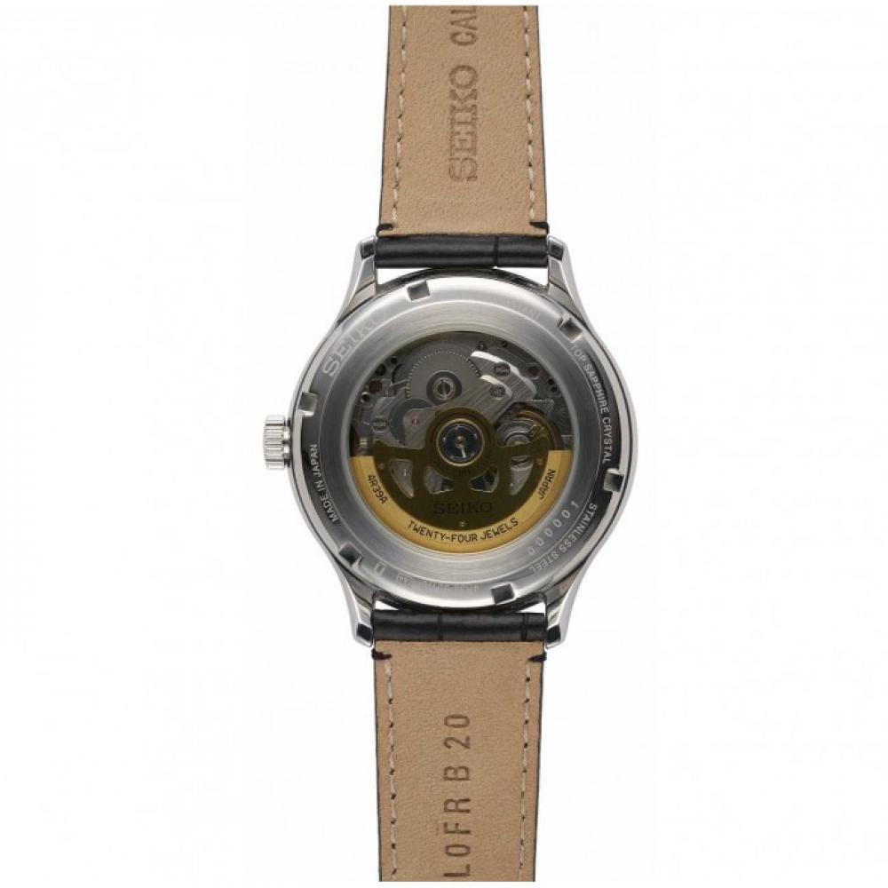 Tous les calibres mécaniques 4R Presage de Seiko sont des montres automatiques où le remontage manuel est également possible. Le calibre Presage 4R est fabriqué au Japon et est fini à un niveau de qualité élevé avec un beau rotor de couleur or.