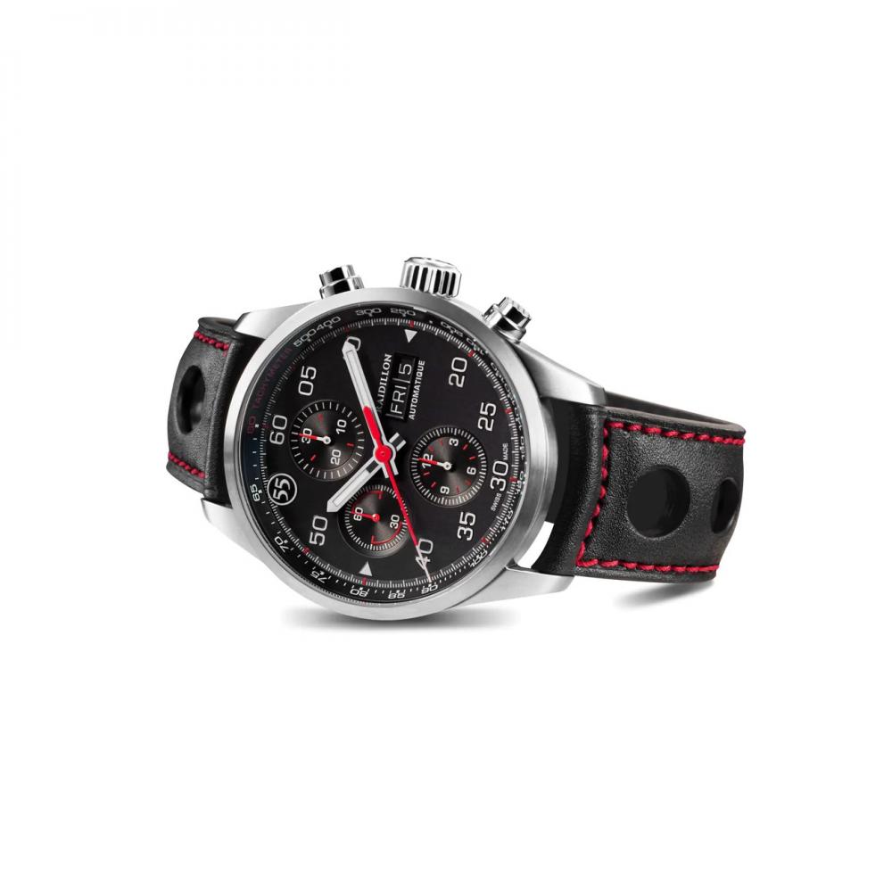 Ce chronographe exclusif de 42 mm incarne le design légendaire des voitures de course. Elle possède un cadran anthracite avec des remontées rouges. L'iconique 55 de Raidillon se trouve au marqueur 55 minutes, le jour/date à 3 heures.